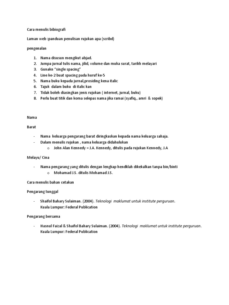 Nama pengarang Barat seperti David Crytal ditulis sebagai Crystal. DBP Nama pengarang -tulis semua nama yang Tajuk buku Tempat Nama Tahun terbit Italickan buku syarikat tercetak pada buku yang diphotostat tajuk buku tersebut. Halaman keseluruhan Format Penulisan Rujukan Untuk Jurnal 1Jilid dan isu 2Abstrak 3Internet bagi seorang pengarang Kraus M.