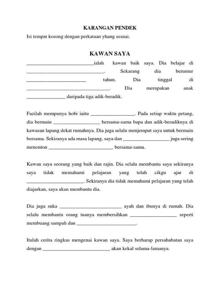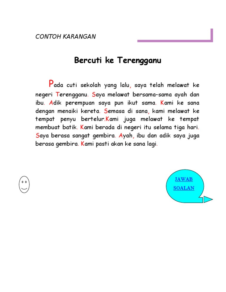12092022 Contoh Karangan Pendek Bahasa Melayu Tahun 3. Rumah itu mempunyai luas sekitar 36 meter persegi. 1 - 6 Karangan pendek KARANGAN PENDEK CONTOH SOALAN.